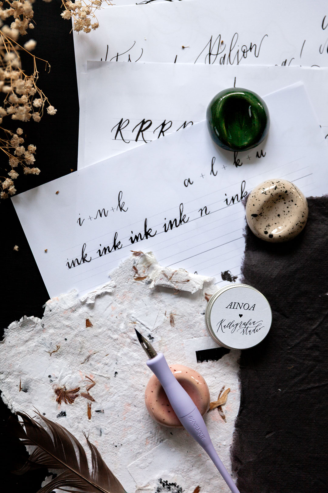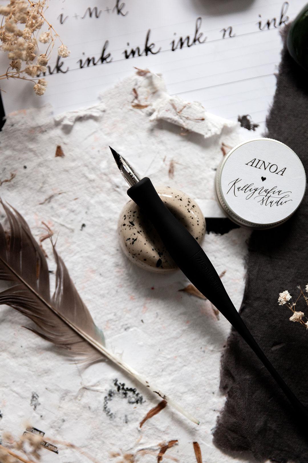 Tervetuloa kauniiden kirjainten, paperin rapinan ja luovuuden äärelle! Ainoa loves Kalligrafiastudio on Ainoan Ainon ja Kalligrafiastudion Ainin yhteinen, rakkaudella ja ammattitaidolla kuratoitu kokoelma kauniita, laadukkaita ja parhaita kalligrafiatarvikkeita. Me halutaan tehdä tähän hurmaavaan harrastukseen sukeltamisesta sulle helppoa ja ihanaa! Anna meidän johdattaa sut modernin kalligrafian saloihin ja toimia oppaana tässä kiehtovassa ja mukaansatempaavassa maailmassa.