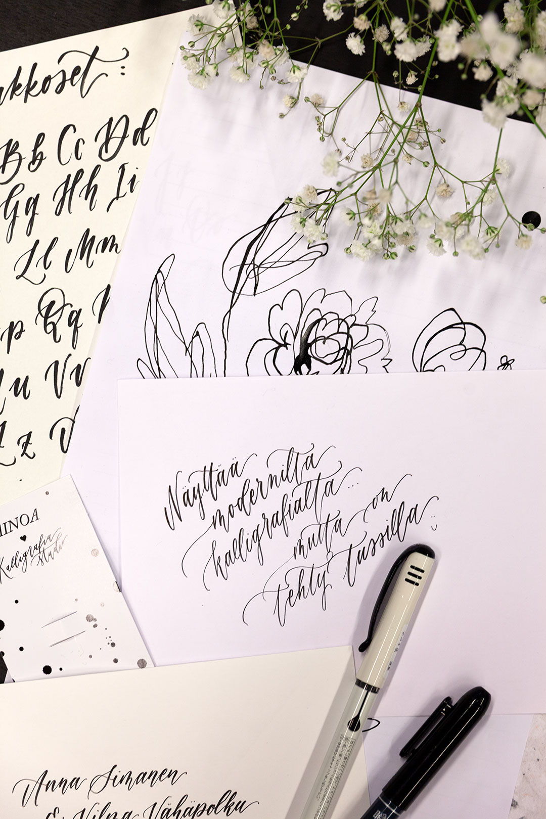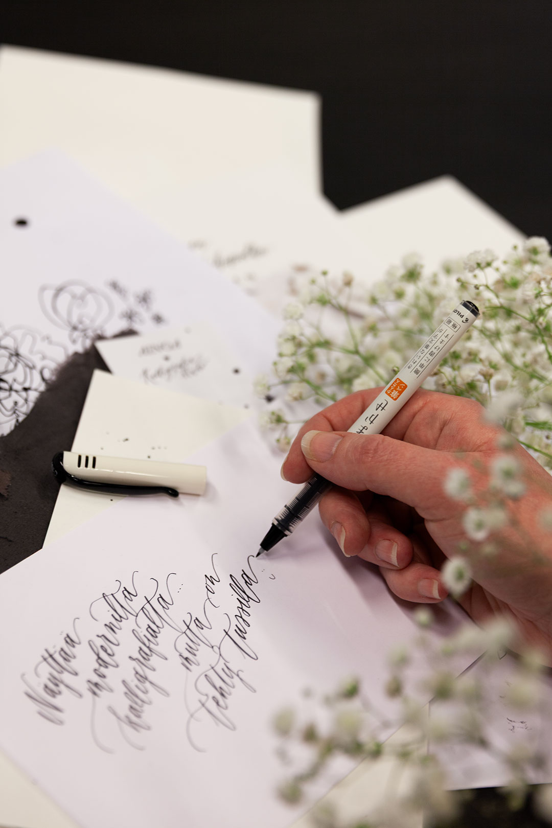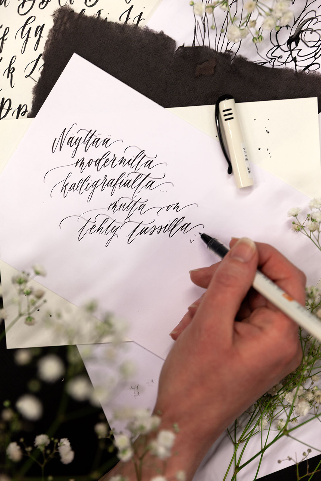 Sivellintussissa on joustava sivellinpää, jolla kirjoitat kauniita kalligrafiatyylisiä kirjaimia ilman tarvetta säätää terän ja musteen kanssa.