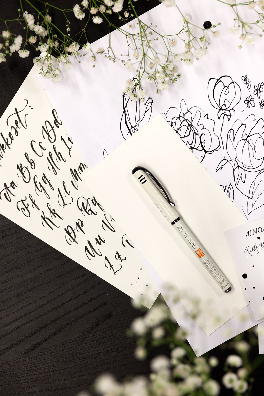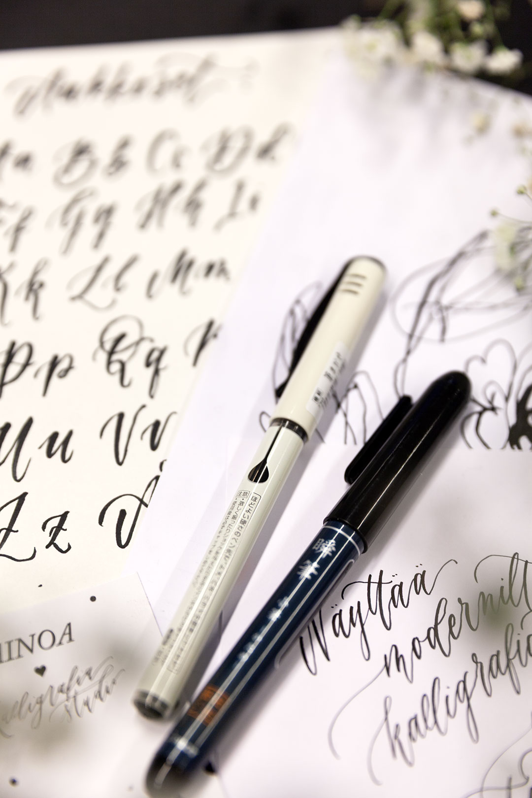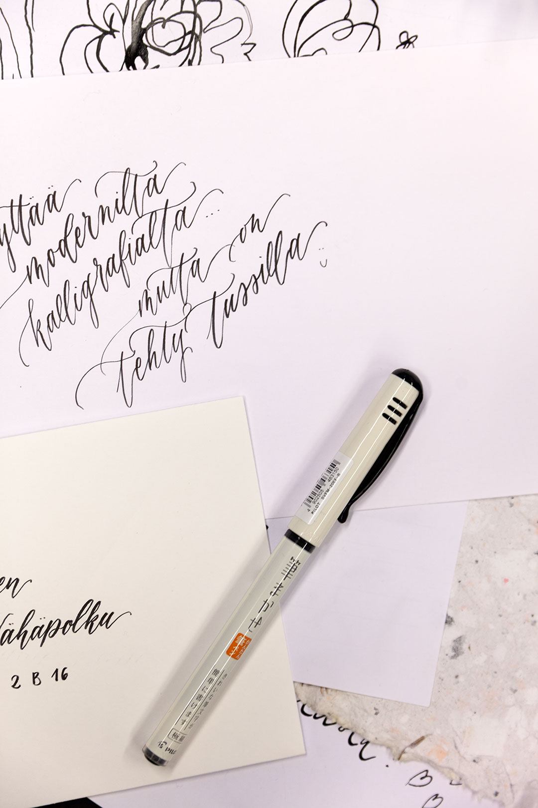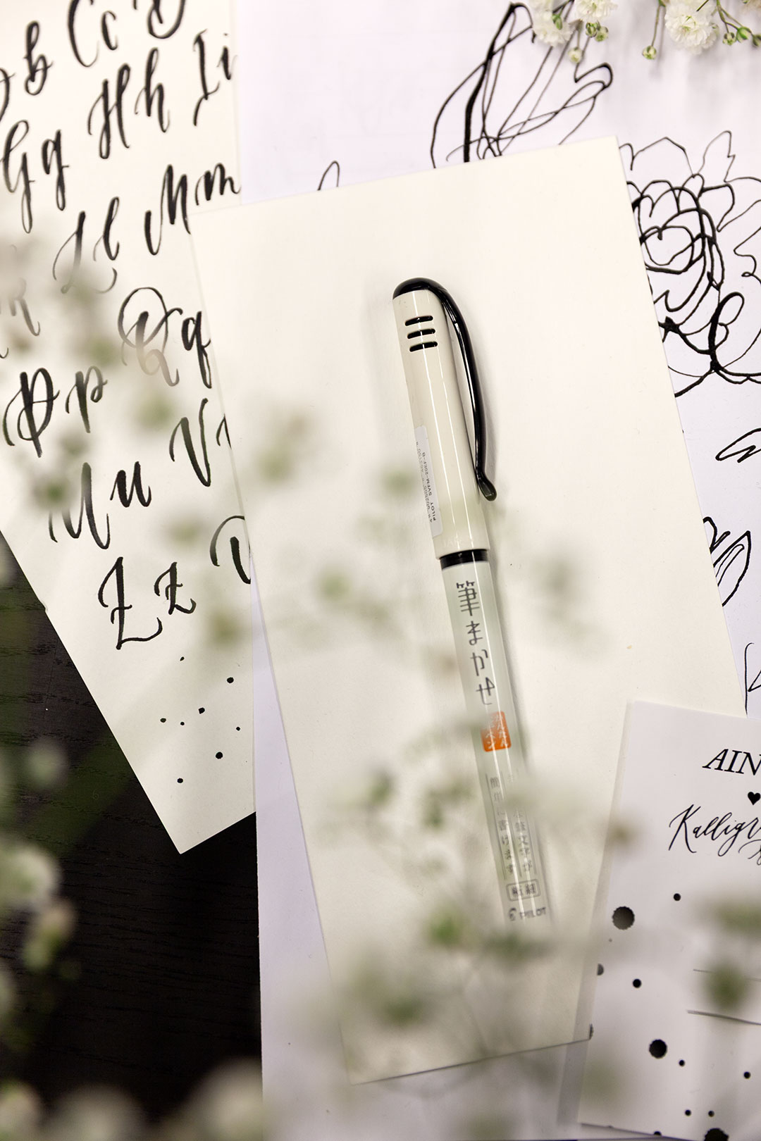 Pilot Fude-Makase on pienipäinen sivellintussi, jolla saat aikaan sirot hiusviivat ja painetta lisäämällä paksumpaa jälkeä. Kynän mukana saat sivellintekstauksen ohjeet joiden avulla pääset alkuun.